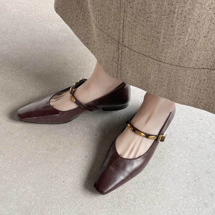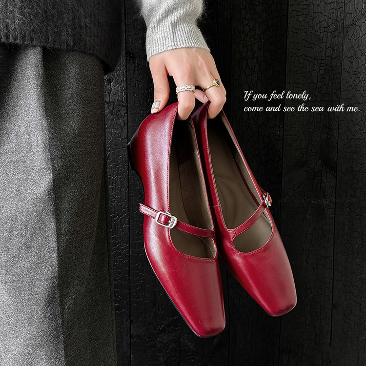 小羊皮成型软底玛丽珍低跟单鞋