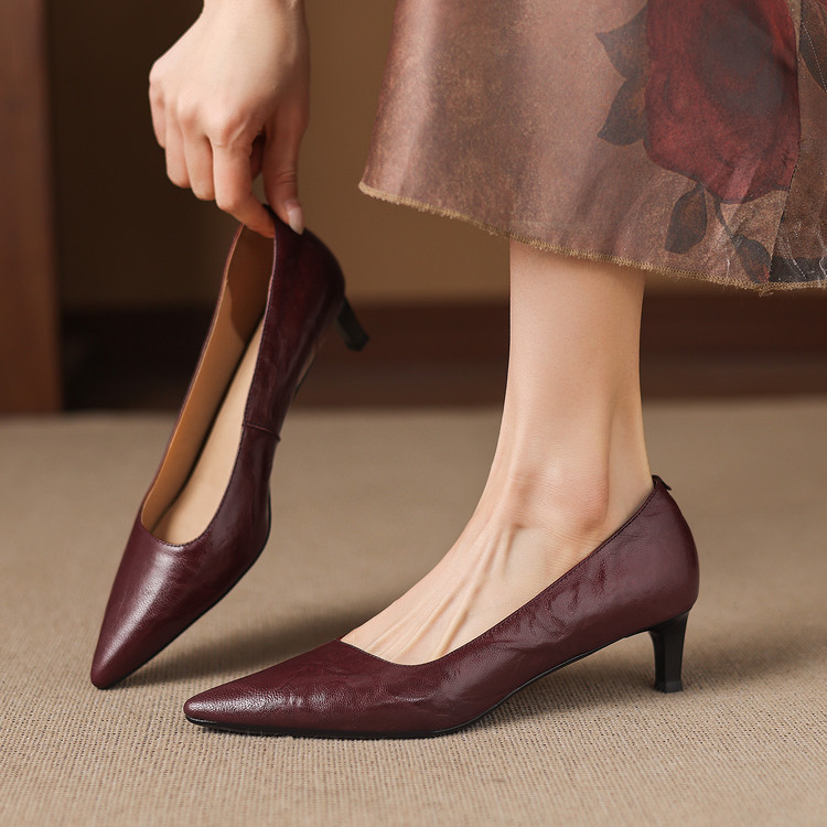 里外全头层羊皮~内增高超软深口单鞋~