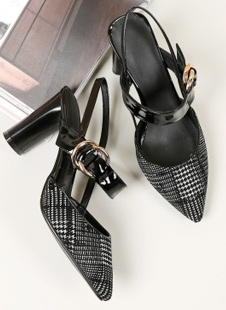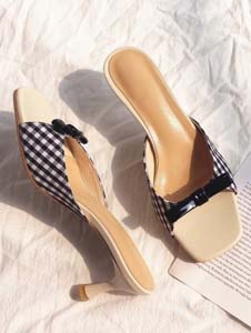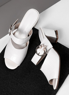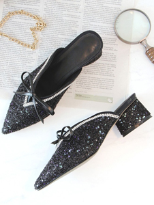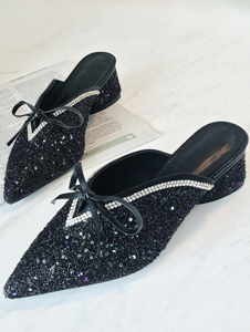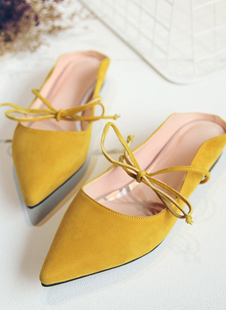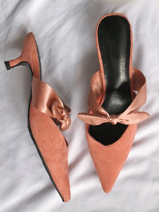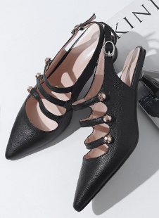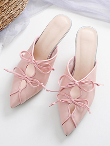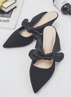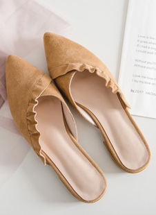 尖头花边全皮拖鞋