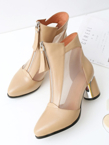 全真皮网纱镂空网靴潮靴,舒适镀银镶钻粗跟,三色可选