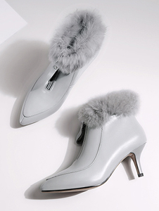 2018秋冬新款 轻奢皮草兔毛短靴 气质灰 经典黑 6cm跟高