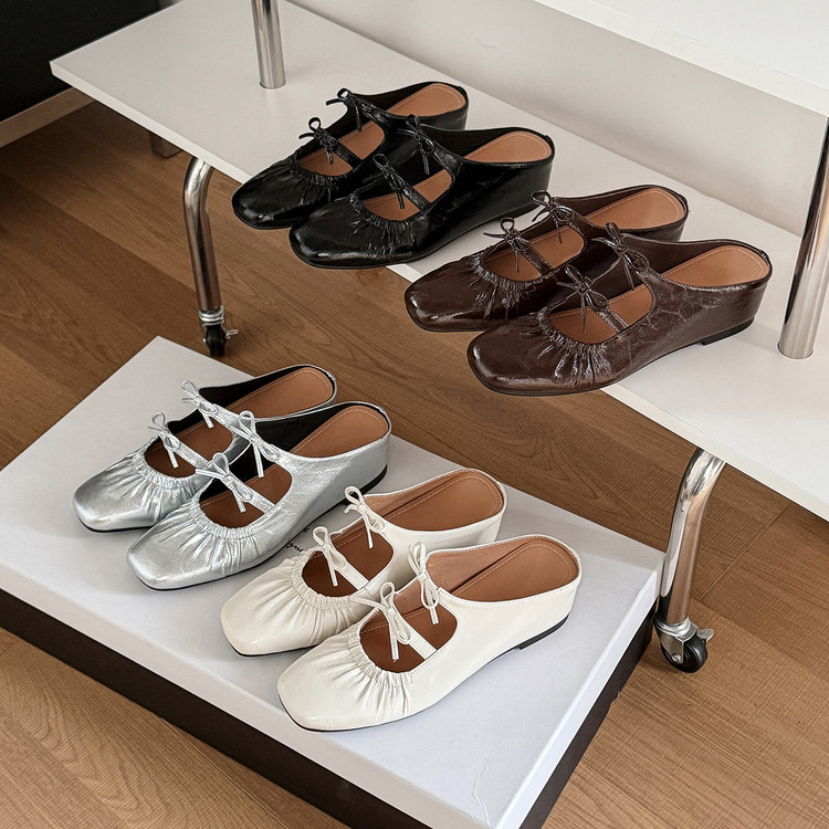 26新 内增高包头半拖珍珠玛丽珍拖鞋 里外头层 现货
