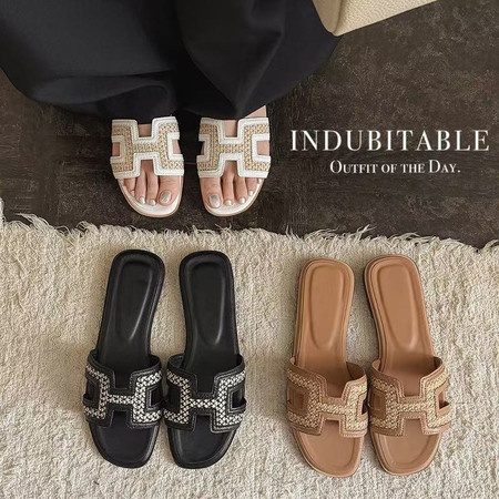 头层羊皮水钻包头拖