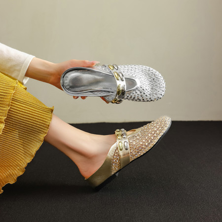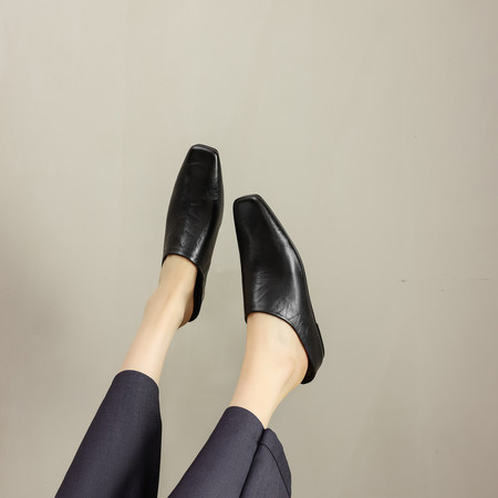 2026春季新款,法式复古风真皮交叉绑带镂空圆头浅口单鞋女平底系带百搭